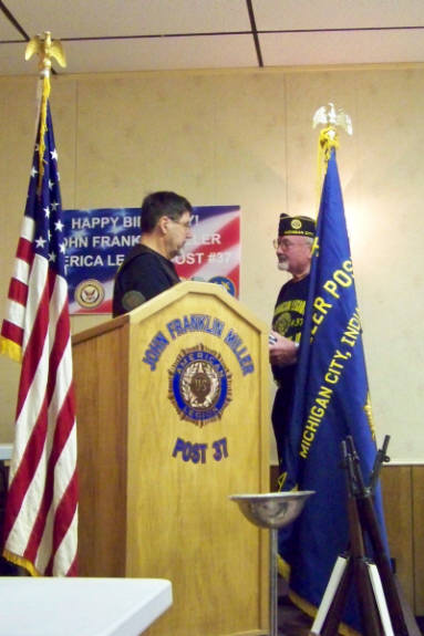 Larry presenting flag to Ron