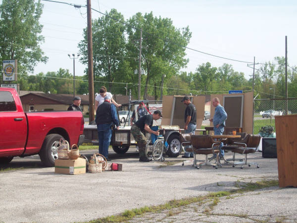 The guys setting up for the garage/bake sale 2010