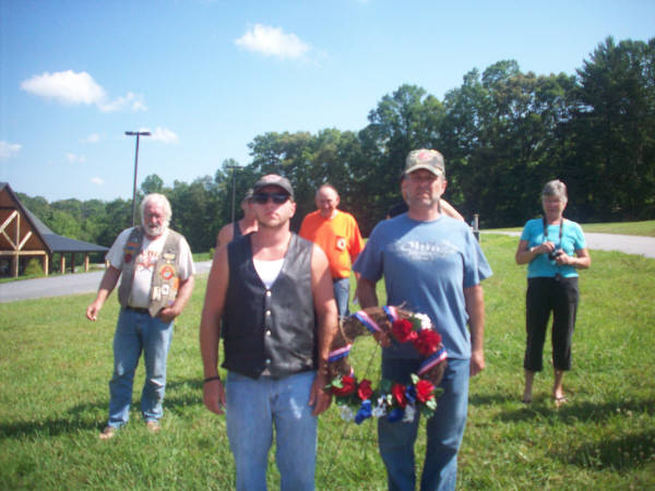 Lee & Doug presenting the wreath at Copperhead Lodge.